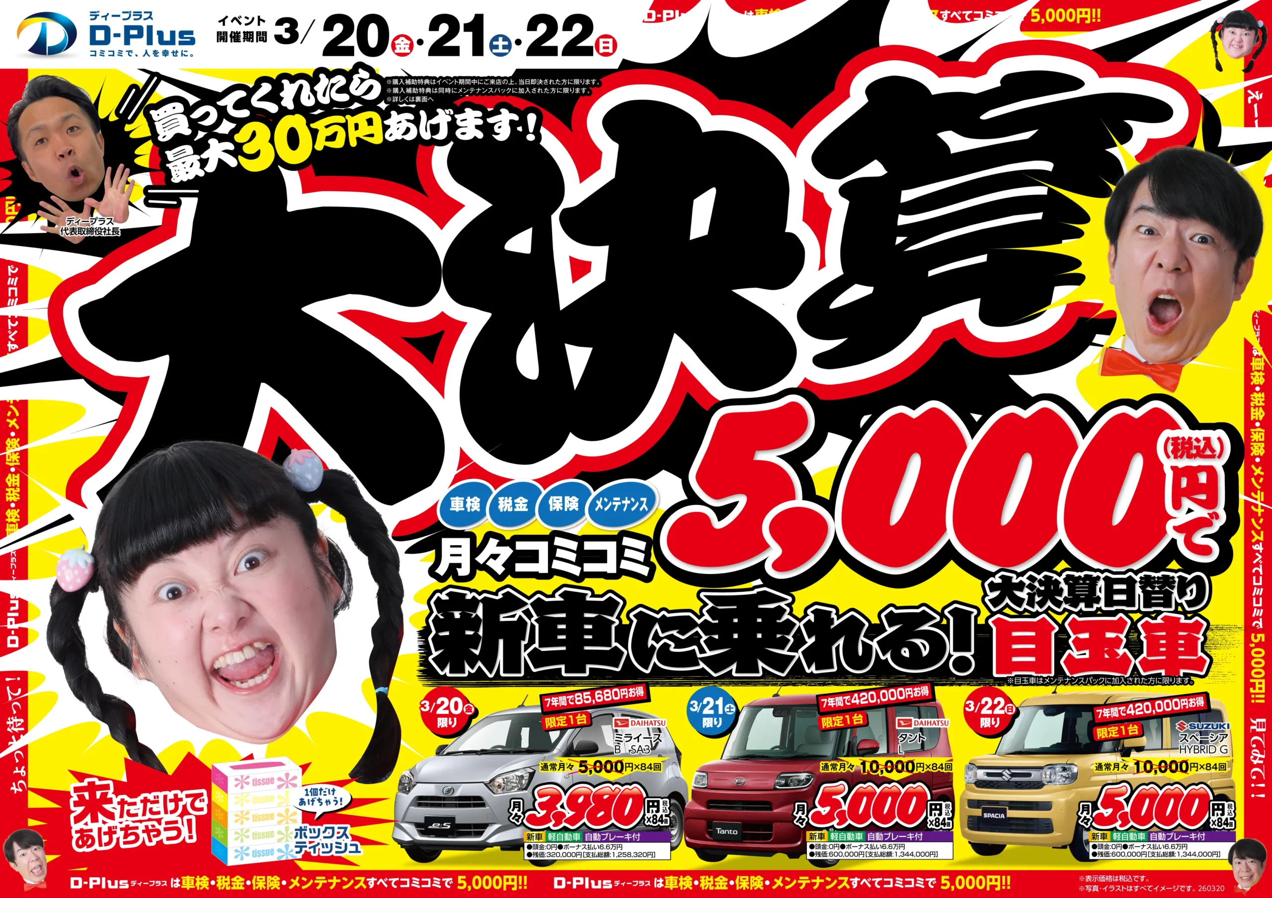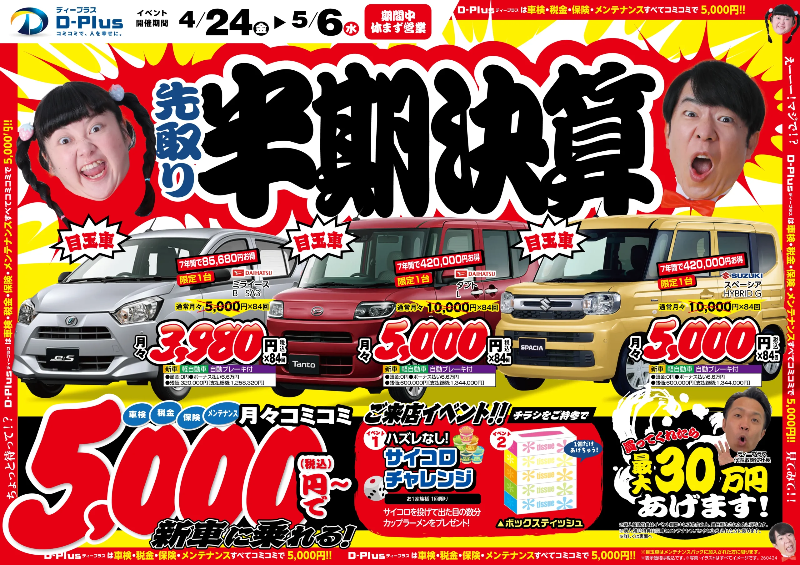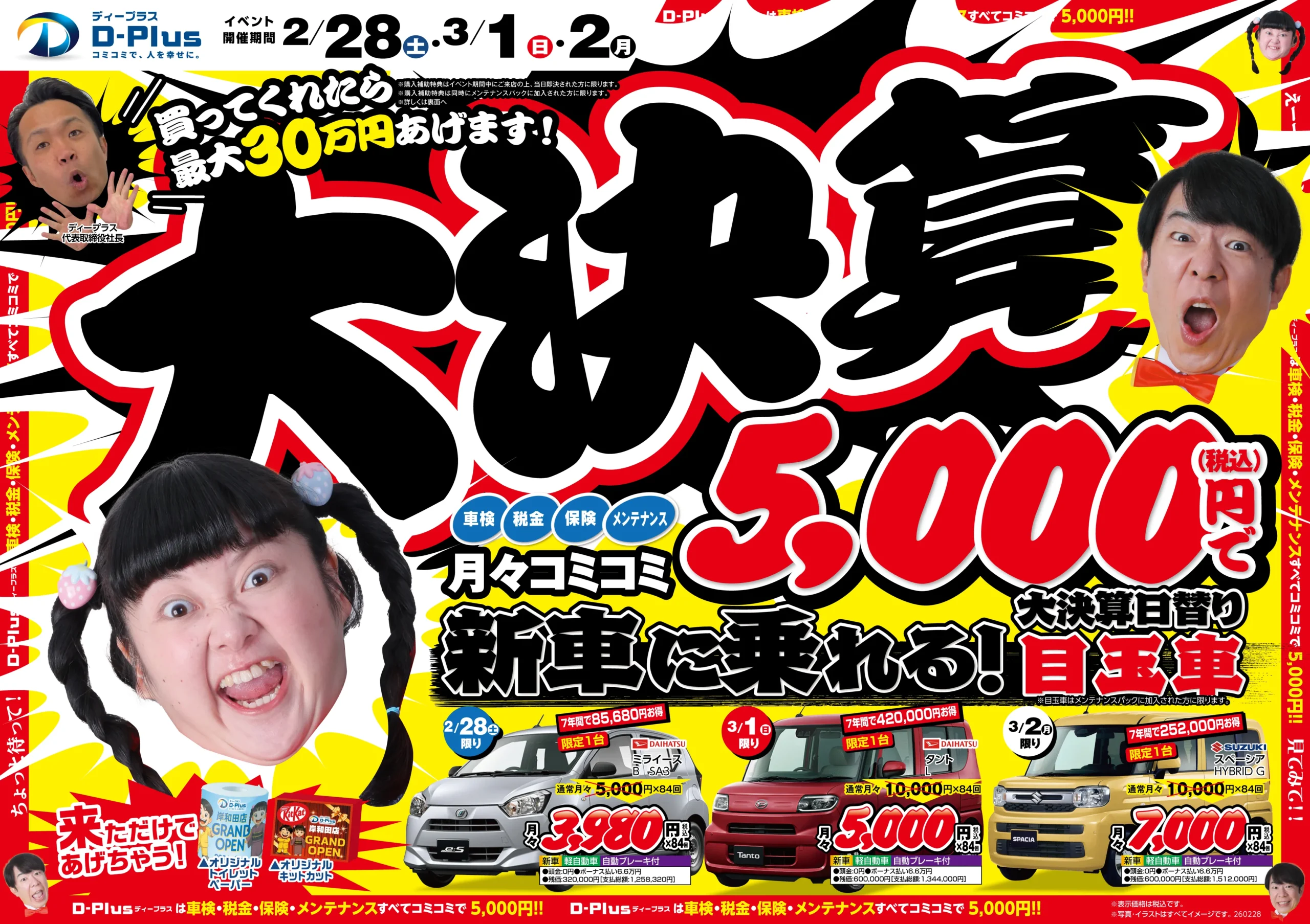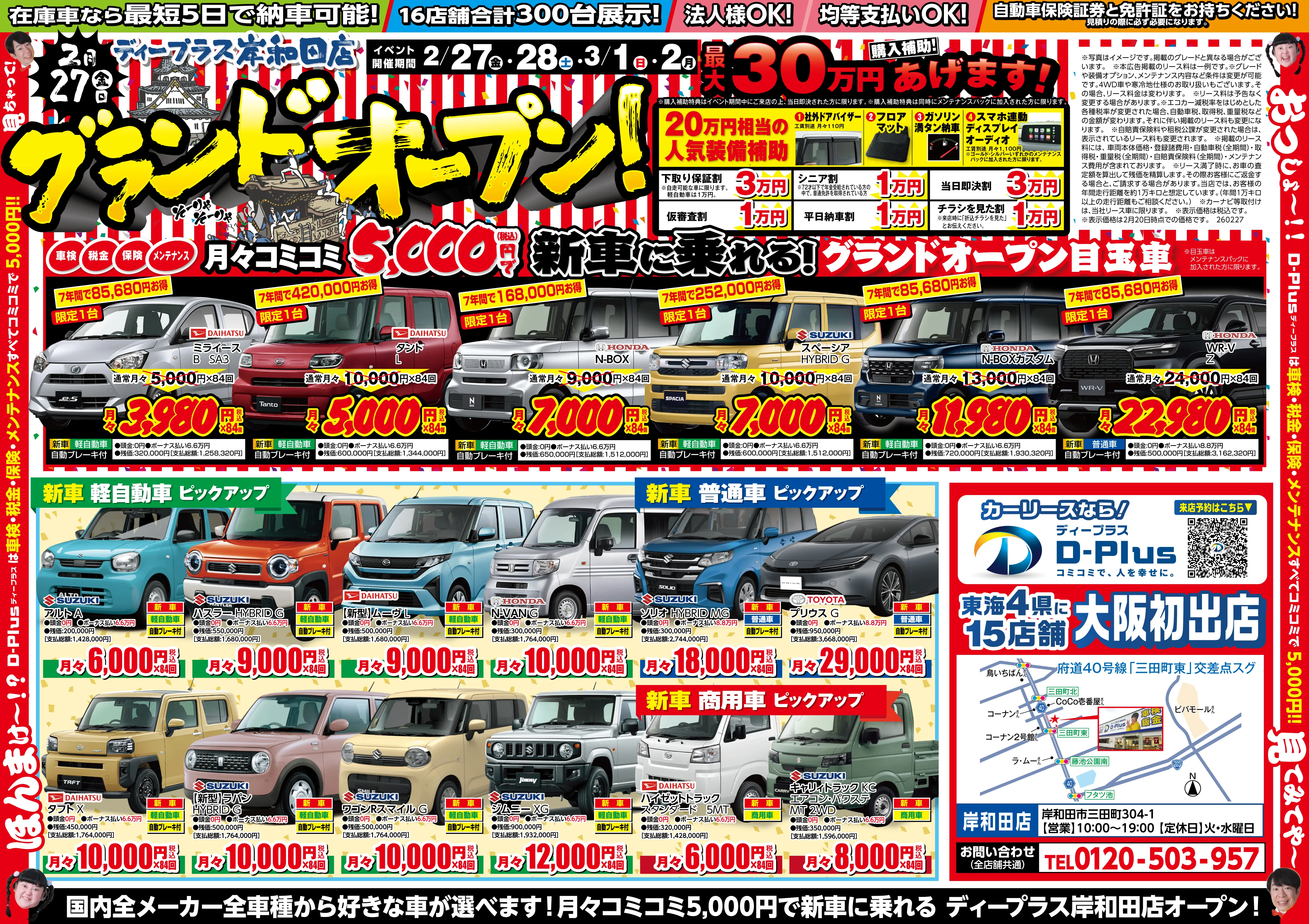 頭金0円・月々定額で新車に乗れる、