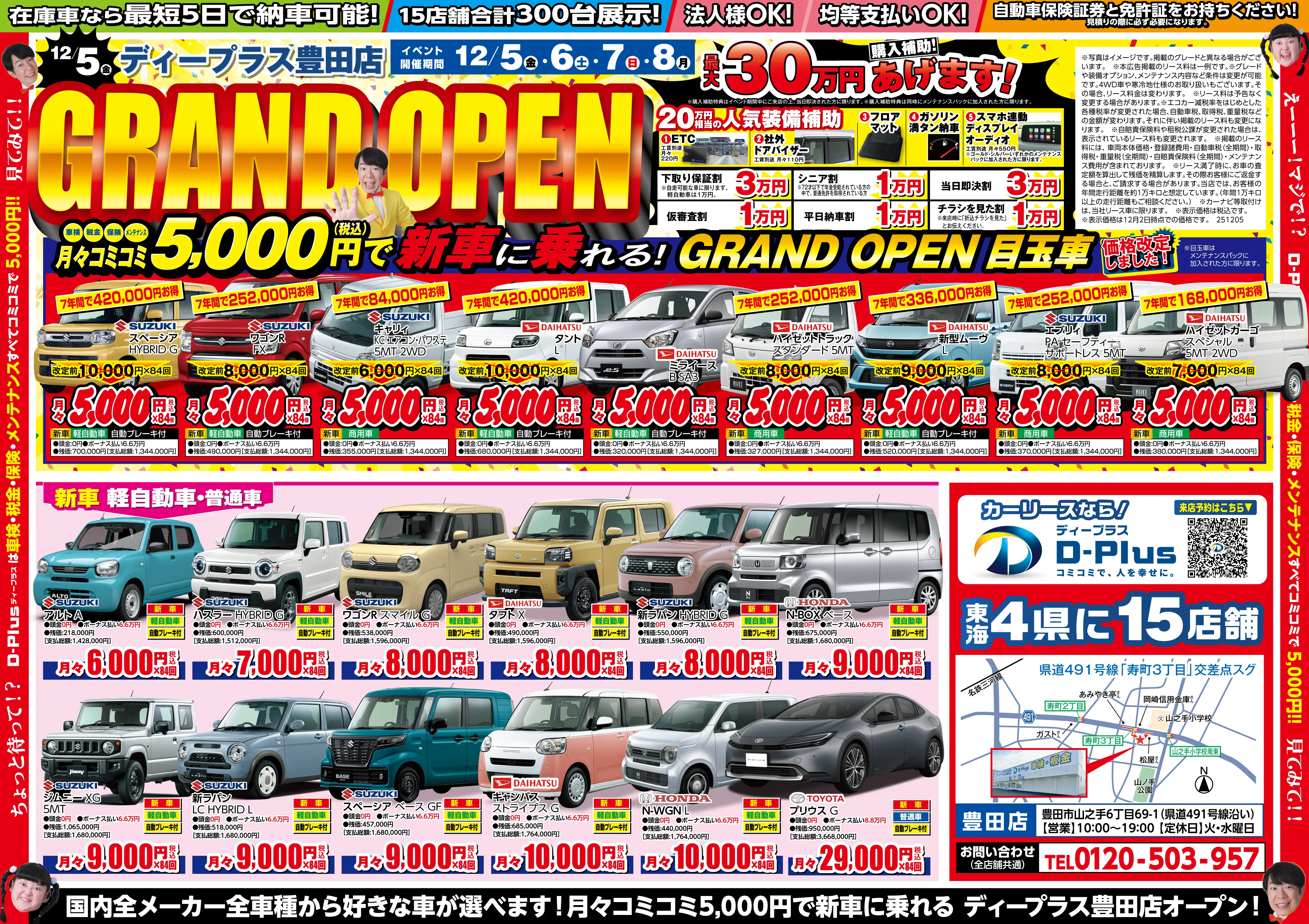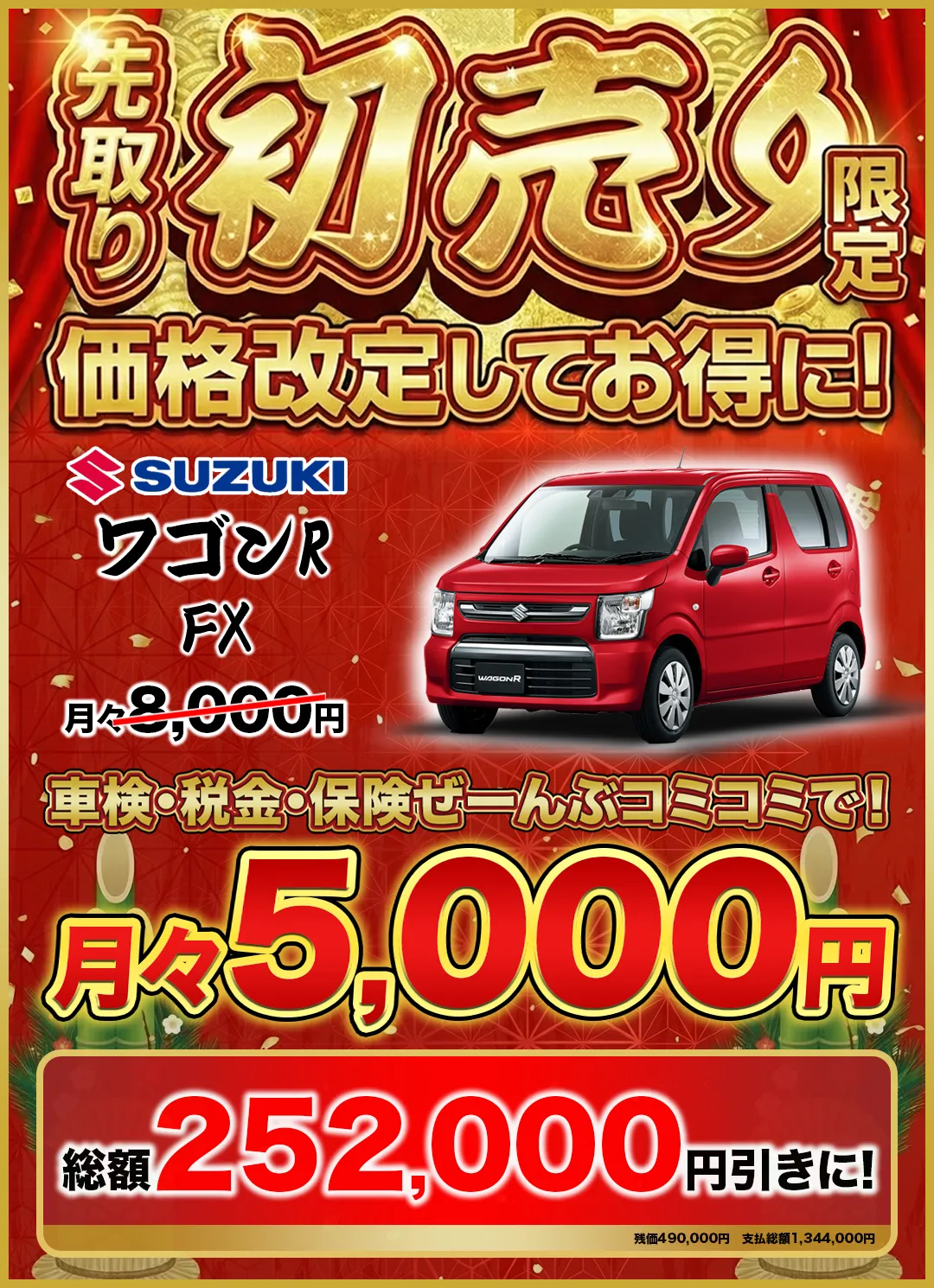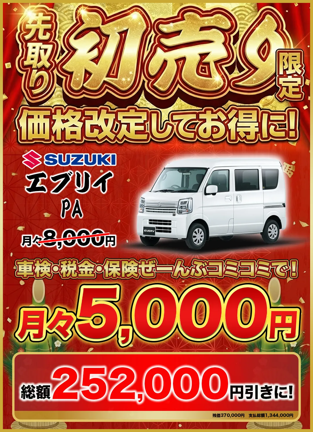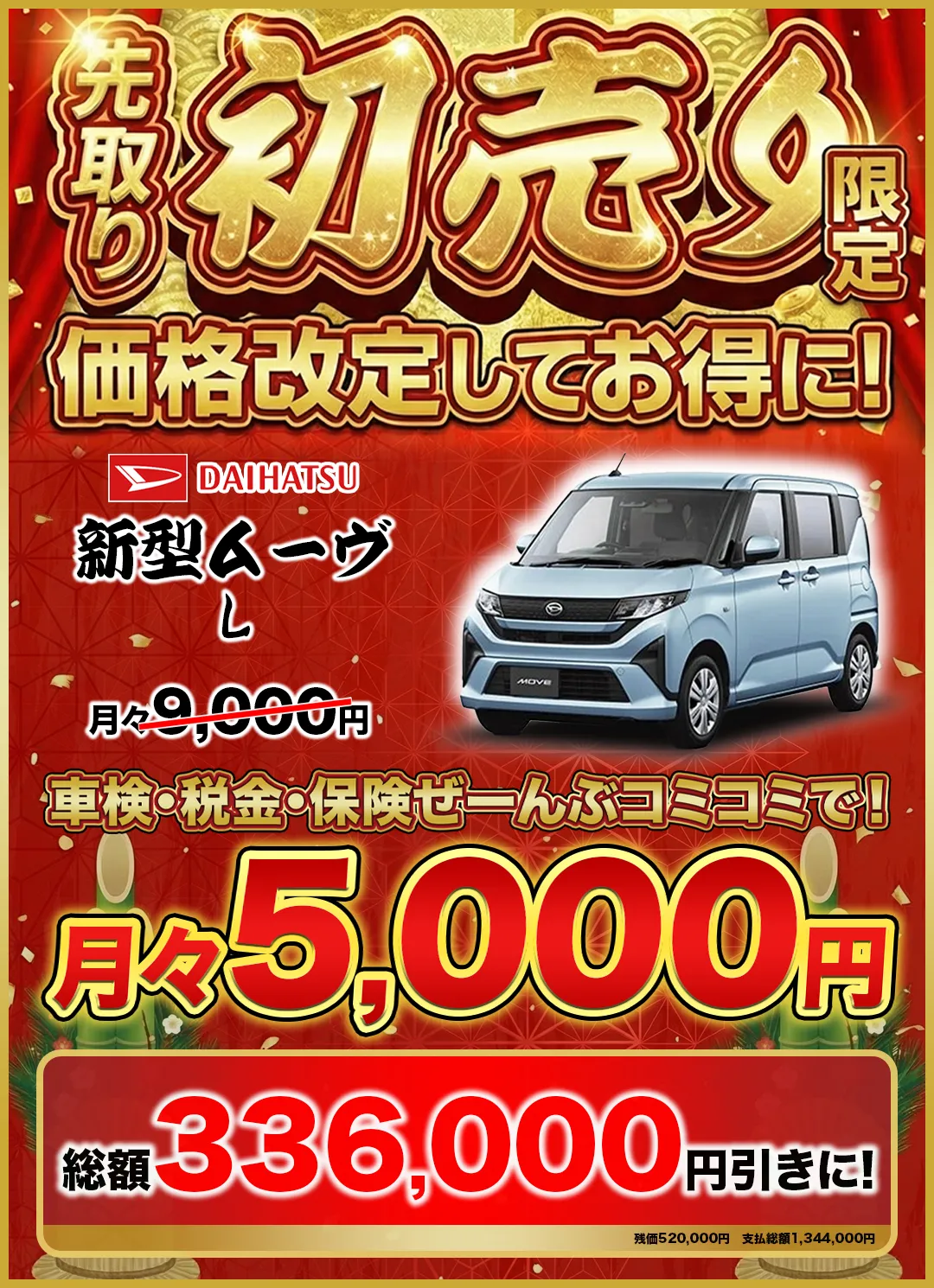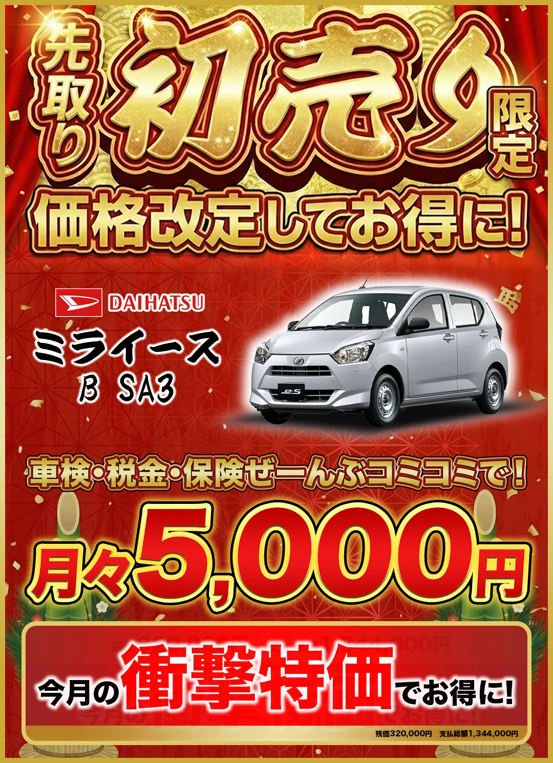 契約期間中の税金やメンテナンス費用が含まれている為、ローンなどと比較すると割高ですが、リースは残価を設定しますのでその分が差し引かれます。そのため実際の月々は割高にはなりません。設定残価はリースアップ時の売却予定価格ですので、月々払いでは、人気車種に絞って高い残価を設定しました。だから、安い月々払いが実現出来ているんです!
