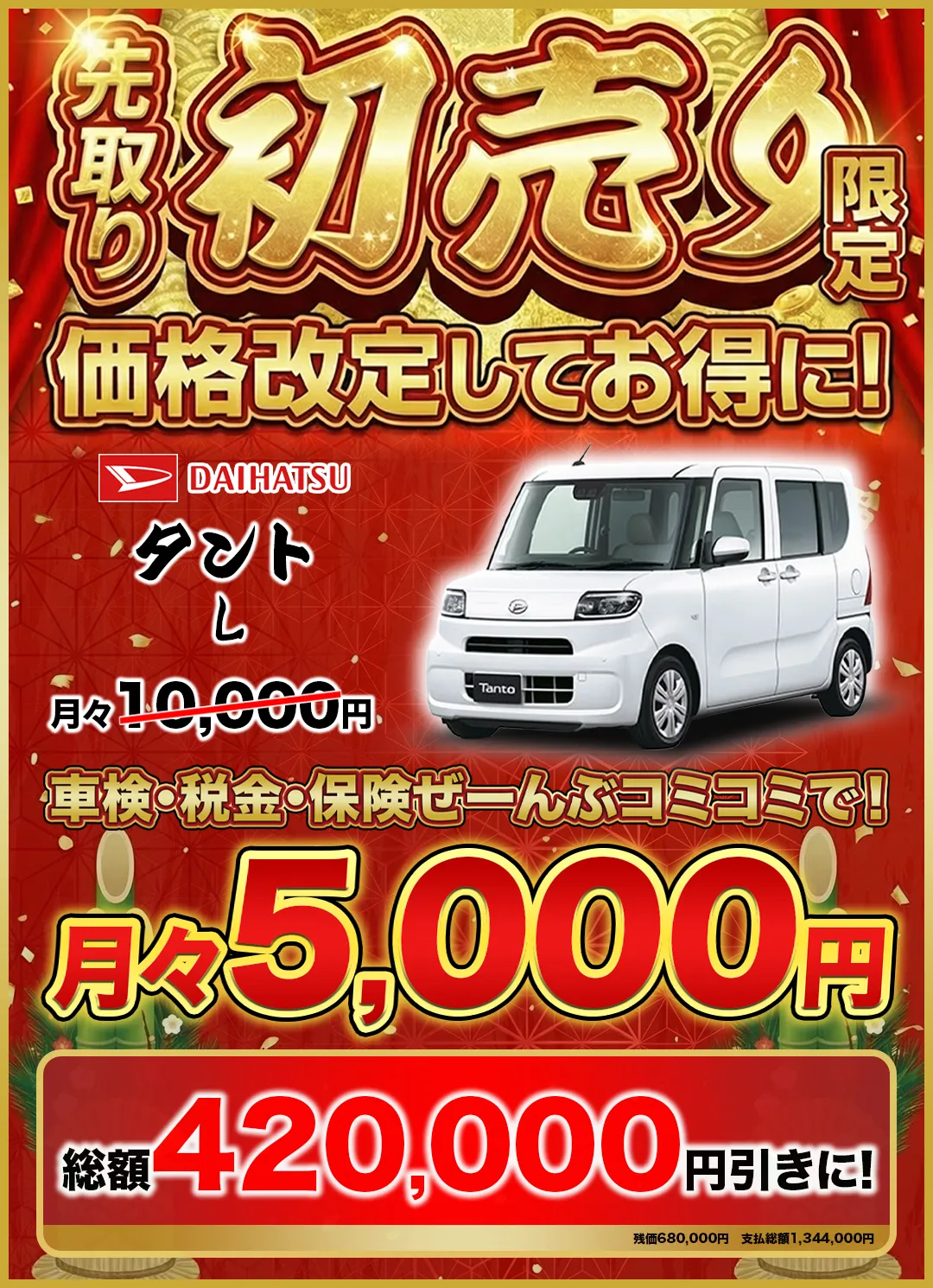 契約前ならナビやオーディオなどを付けて、分割払いに組み込めます。契約中でも、法令に違反せず車輌の価値を下げない範囲であれば、お好みのタイヤやアルミホイールに履き替えたりすることもできます!
