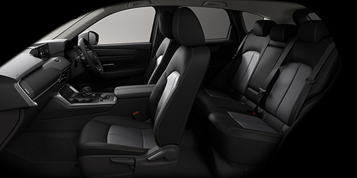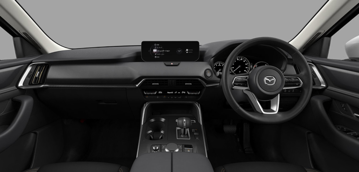 CX-60 25S S Packageの室内は、ゆとりのあるサイズ感を確保しながら、プレミアムSUVならではの上質な空間設計が施されています。