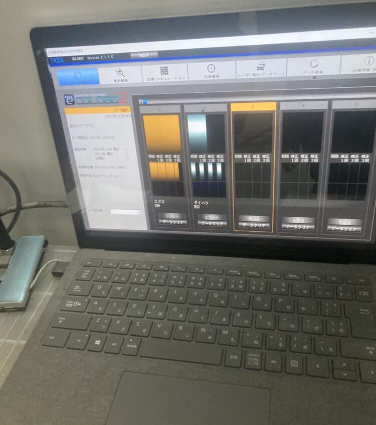 その色に合わせた塗料配合を自動で算出してくれるシステムです🚗🎨