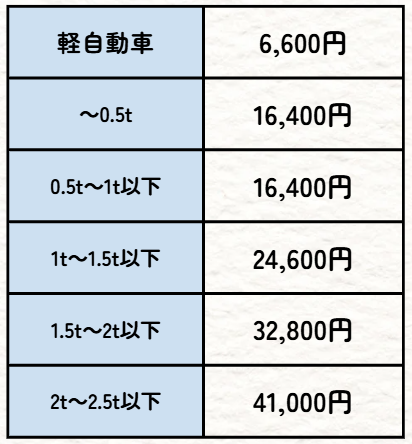 税額は、軽自動車か普通自動車かという区分と、車両重量によって定められており、普通車の場合は0.5トンごとに税額が加算されます。