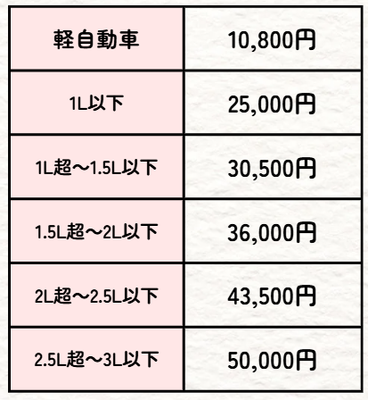 例えば、1L超~1.5L以下は30,500円、1.5L超~2.0L以下は36,000円です。