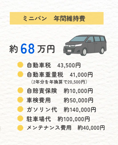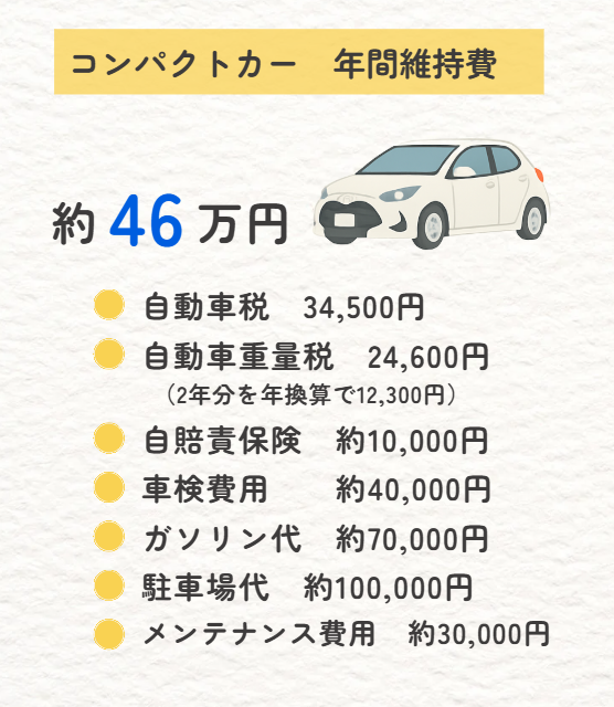この金額には、自動車税や車検費用、ガソリン代、駐車場代などが含まれます。