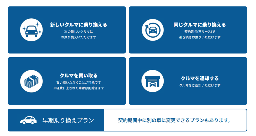 また、別の車種に乗り換えることも可能です。これにより、契約時の状況が変わっても柔軟に対応できる点が大きなメリットです。