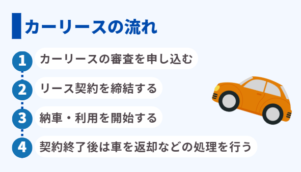 まずは、カーリースの契約における手順や、カーリースの契約の流れについて以下の項目で説明します。