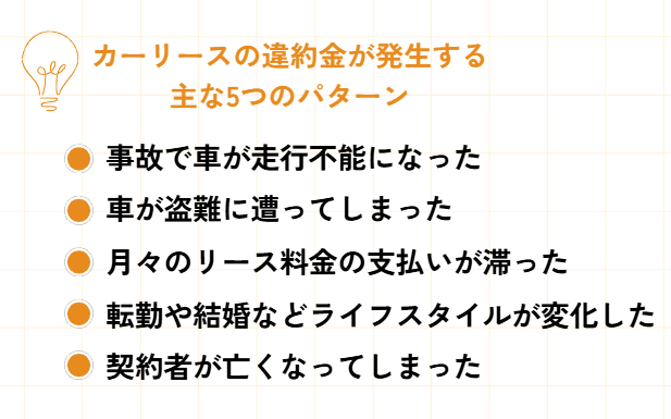 カーリースの違約金は、契約期間の途中で契約を終了せざるを得なくなった場合に発生します。