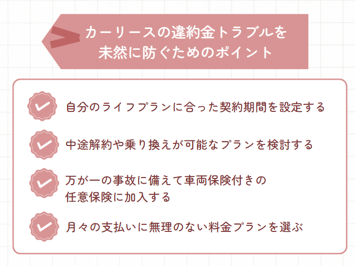 カーリースの違約金トラブルを未然に防ぐためのポイント