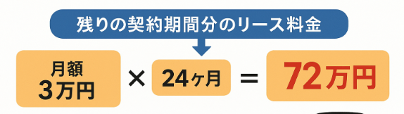 例えば、月額3万円のリース契約で、残り契約期間が2年(24ヶ月)であれば、単純計算で72万円がベースとなります。