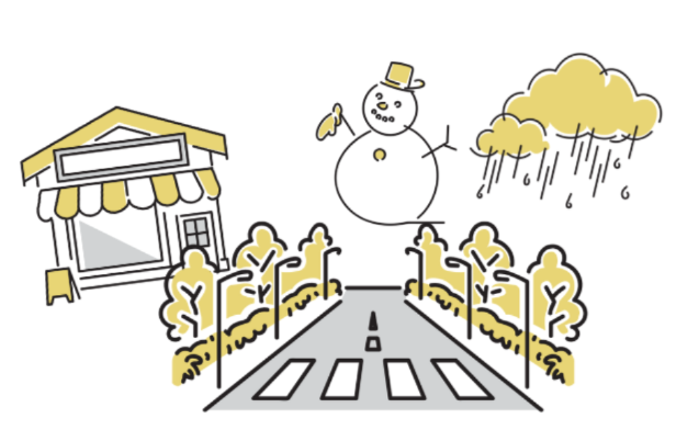 雨や雪といった悪天候の日でも、濡れることなく快適に目的地まで移動可能です。