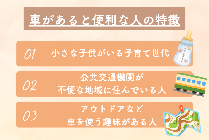 メリットを最大限に活かせる!車があると便利な人の特徴