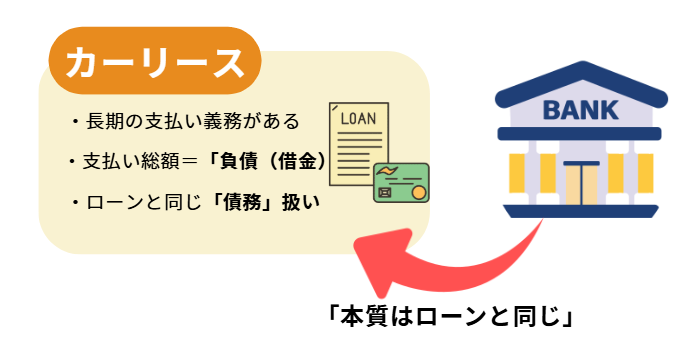 所有権はリース会社にありますが、金融的な観点では、分割払いで高額な商品を購入するローン契約と本質的に変わらないと見なされるのです。