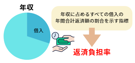返済負担率とは、申込者の年収に占めるすべての借入の年間合計返済額の割合を示す指標です