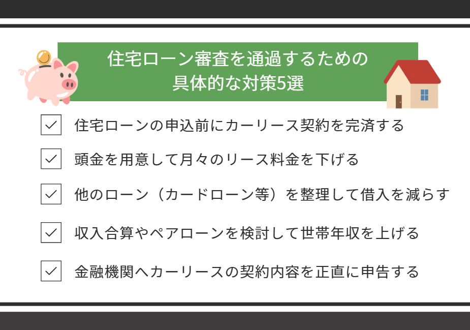 カーリースを利用しながら住宅ローンの審査を通過するためには、事前の対策が不可欠です。