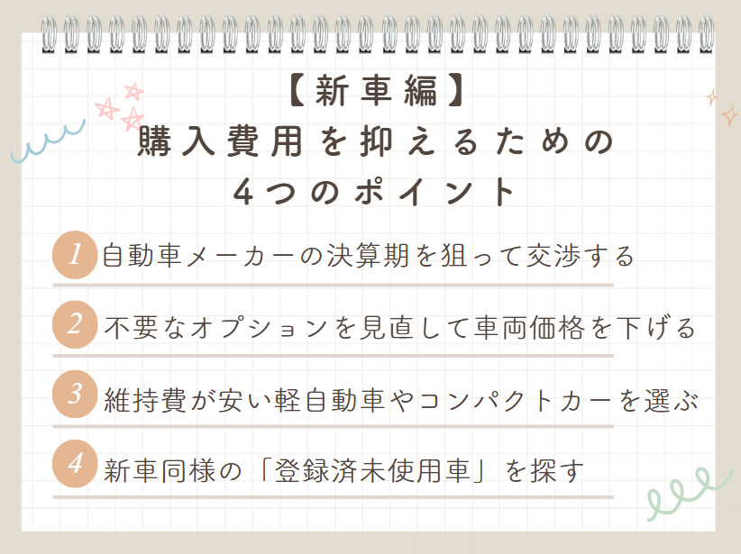 新車の購入は大きな出費ですが、いくつかのポイントを押さえることで費用を抑えることが可能です。
