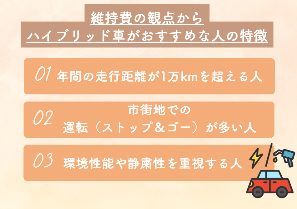 維持費の観点からハイブリッド車がおすすめな人の特徴