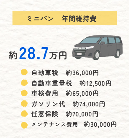 車体が大きく重くなる分、他のボディタイプより費用はかかりますが、同クラスのガソリンミニバンと比べると燃料費の面で有利です。