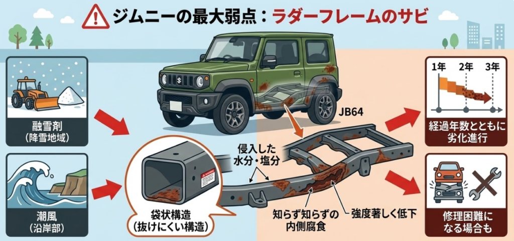 しかし、長持ちさせるためにはジムニー特有の構造を理解し、弱点をカバーする手入れが重要になります。