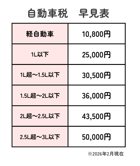 税額は、普通自動車の場合はエンジンの総排気量によって決まり、排気量が大きいほど高くなります。