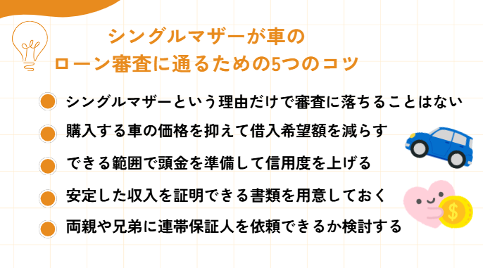カーローンの審査において、シングルマザーであること自体が直接的な不利益になることはありません。