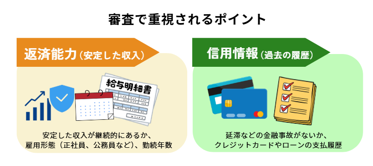 審査で最も重視されるのは、申込者の「返済能力」と「信用情報」です。