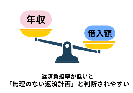 年収に対する借入額の割合(返済負担率)が低いほど、審査では「無理のない返済計画である」と判断されやすくなります。