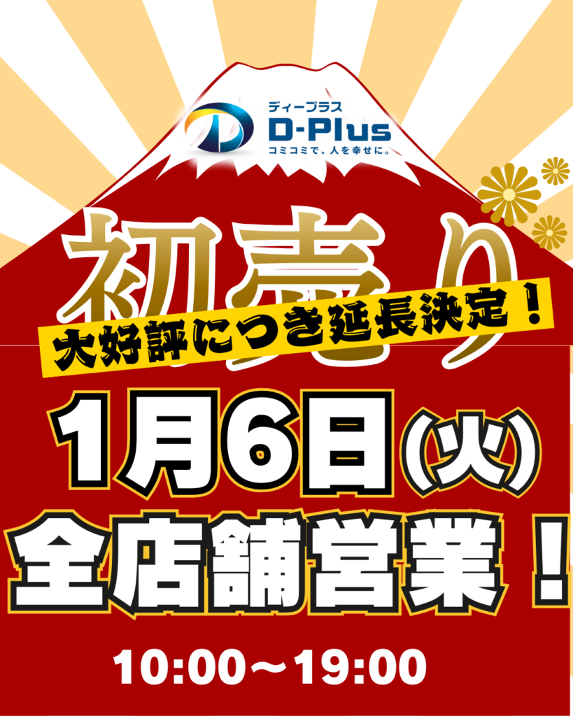 2026.01.03 1月6日(火)営業のお知らせ✨📢 いつもディープラスをご利用いただきありがとうございます🌟 通常は定休日の1/6(火)ですが…🔥 休まず営業いたします! 🔥さらに‼️🎉 大好評につき、初売りイベント延長決定! 🎉まだまだお得な目玉車・特典をご用意しております🚗💨「行きたかったけど行けてない…」という方もこのチャンスをぜひお見逃しなく👀✨🔧点検・車検のご相談🚙お乗り換えのご相談も大歓迎!スタッフ一同、皆さまのご来店をお待ちしております😊💖 トップへ戻る RELATED 関連記事 記事一覧へ戻る